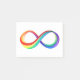 Bright symbol of infinity from plastic layers of red, yellow, green, turquoise, blue and purple saturated colours on white background.