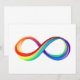 Bright symbol of infinity from plastic layers of red, yellow, green, turquoise, blue and purple saturated colours on white background.