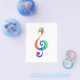 Musical key drawn from multicolored layers of rainbow colours on white background.