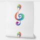 Musical key drawn from multicolored layers of rainbow colours on white background.