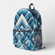This Layered Triangles backpack showcases a bold geometric design featuring overlapping triangles in various sizes and shades of blue, from navy to sky blue. The subtle gradients and shadow effects give the pattern depth and dimension, creating a visually dynamic yet minimalist aesthetic. Perfect for those who appreciate modern, clean designs, this backpack blends style with functionality, offering ample space for daily essentials. Whether for school, work, or casual outings, the Layered Triangles backpack adds a touch of sleek sophistication to any look.