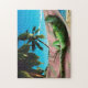 11” x 14” jigsaw puzzle with an image of an extreme realism watercolor painting of a perfectly reclined green iguana basking in the tropical sun. See the entire Nature & Wildlife Puzzle collection in the HOME section.