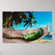 Poster of an extreme realism watercolor painting of a perfectly reclined green iguana basking in the tropical sun. See matching wrapped canvas print. See the entire Nature & Wildlife Poster collection in the ART & POSTERS section.