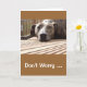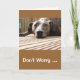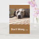 A stunningly handsome lurcher dog laying flat on the decking looking tired after a day out. He is whippet greyhound staffordshire bull terrier cross. The greeting on the outside reads "Don't Worry ... " and inside it says "You Only Have One Birthday A Year" The greeting is fully customisable so you say whatever you wish.