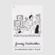 A husband is so lazy, that when watching horse racing on the television, if his horse wins, his wife has do the jumping up and down with glee for him. Funny golf towel cartoon.