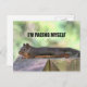 Photo of a lazy squirrel lying down on a wooden deck railing with the words "I'm pacing myself" in black type above him, and trees in the background. The squirrel is lying on its stomach and is stretched out on the deck. A funny squirrel picture for anybody who loves our little furry friends!