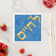 The perfect paper napkin featuring good wishes, L'Chaim in gold Hebrew lettering. For Shabbos or any happy occasion.