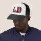 "LD" monogram hat with red and black letters