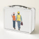 This is a standard metal lunchbox that appears to work just fine. We designed this box ourselves with an uploaded photo and custom text on the front and back. It looks absolutely beautiful except the front of the lunchbox is not centered like it shows in the photo. The print borders don't align with the inset flat part of the box where the preview photo online showed it perfectly centered in there. The back looks nice and centered though.