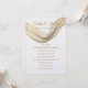 This wedding invitation is shown in a classic layout on a White background shown in a paper choice of Peal Shimmer paper. Select your choice paper. Graphic of Gold sheer veil draped across the top front . Couple's Names mingle with the veil graphic in a Golden-colour at top. Body text shown in Golden-colour beneath the veil drape. Customise this item by taking the sample text and putting your information in it instead.