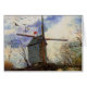 Le Moulin de la Galette by Vincent van Gogh is a vintage fine art post impressionism architectural painting featuring a windmill at the top of a hill in Montmartre, France with a farmer working his field.