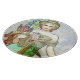 A beautiful piece. A tempered glass. Nice weight .Does not look or feel cheap. If held up to a window it looks like a piece of stained glass. The colors are a soft pastel and very clear.