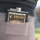 The flask itself is fine. It’s a cheap flask, obviously bought in bulk, however am prepared to overlook that. Given that it is a personalized item, I would have liked to have seen gift boxing instead of the generic packaging. Terrible printing, and/or quality. It’s a cheap, tacky vinyl. It is not cut straight and is also applied in a way that it is overhanging the bottom, causing the glue to catch on items and it will eventually roll and tear, damaging the wrap.