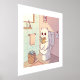 A cute art image of a fuzzy white cat reading a book in a concentrated manner while sitting comfortably on the toilet. This humorous and charming illustration adds a playful touch to any room, perfect for bathing room decoration or as funny wall decoration in the house. Ideal for cat lovers and enthusiasts of unique, peculiar works of art.