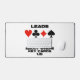 Bridge players will enjoy this desk mat featuring the four card suits along with the following bridge truism saying: "Leads Provide Significant Clues About Where Key Cards Lie". Memorable bridge advice desk mat for any bridge player who is frequently on defence and who tries to assess where the key cards lie!