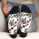 Bridge players will enjoy this pair of crew socks featuring the four card suits along with the following bridge truism saying: "Leads Provide Significant Clues About Where Key Cards Lie". Memorable bridge advice socks for any bridge player who is frequently on defence and who tries to assess where the key cards lie!