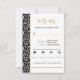 The Modern Leaf Border Black & White Wedding Menu Music RSVP Card in portrait format is an essential component of your wedding stationery. It features an outlined leaves border, framing the title RSVP and the couple's initials on the front against a black backdrop. The template includes details on the back for guests to RSVP by a specified date and declare the number of attendees. Dietary requirements can be noted under associated icons. You can also add your favourite dance music title. All text can be customised to reflect your requirements. Furthermore, you may modify all colours by following the edit link. For more wedding planning ideas, please visit www.KBMD3signs.com. For custom design enquiries or assistance, please email info@KBMD3signs.com.