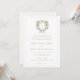 This timeless monogram wedding invitation features an elegant crest with a tan bow and tan text announcing all your important wedding details.
