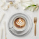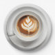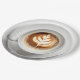 Leaf pattern in cream a white latte cup on a white saucer isolated on white