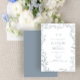 The invitation features an intricate leafy line art motif framing your post wedding brunch invitation details, where you feature the couples' initials in a beautifully crafted monogram. A hand lettered calligraphy font adds an elegant touch that will bring the whole look together, in a timeless colour combo of dusty blue and bright white.