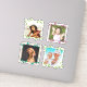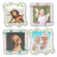 Create photo stickers for scrapbooking, journalling, or other fun. Each sheet comes with four different framed photo templates, which are shaped to the design. Choose a sheet size that gives you the correct sticker size needed. Green leaves make up two of the frames and the other two have borders in grey and tan. Leaf colours are burgundy and teal. Each photo template is square, but your photo can be any orientation and size. It will be centred in the frame, so be sure your subject is near the centre of the photograph. These wonderful little stickers are perfect for scrapbook pages, or add to envelopes, note cards, lunchboxes, and many other places. Kids will especially love seeing themselves, or their pet, on a sticker!