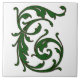 The letter T in Leaf style done in green on a white background with a slight shadow to give it a three dimensional effect.