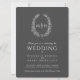 Leaf oval line art wedding dark grey and white invitation