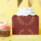 Leaf oval monogram drawing gold on dark red wrapping paper
