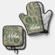 Leaf Tiki Sage Green Hawaiian Tropical Oven Mitt & Pot Holder Set