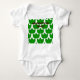 This baby bodysuit has a Scandinavian design of leaf trios repeating across the design in three shades of green.