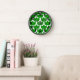 This wall clock has a Scandinavian design of leaf trios repeating across the design in three shades of green.