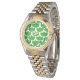 This women's watch has a Scandinavian design of leaf trios repeating across the design in three shades of green.