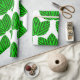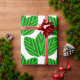 This wrapping paper has a Scandinavian design of leaf trios repeating across the design in three shades of green.