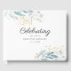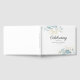 Elegant, green-blue-gold, leafy "Celebration of life" white Guest Book. Elegant, lovely handwriting font.