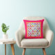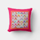 A fun colourful chevron design over a background a painted leafy ferns. Design is bordered in vibrant pink and orange. Add a pop of colour in any room of the house, or choose the "outdoor" material, and they make a colourful poolside or patio pillow.