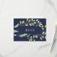 This trendy and stylish wedding response card features a leafy green watercolor frame and modern typography on a midnight blue background.