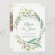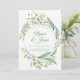 This trendy and stylish save the date card features a leafy green watercolor frame and modern typography, on a white background. The back features your personal photo.