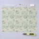 A soft and dreamy seamless print of layered leaves in filmiest watercolor shades of olive green, sage, eucalyptus blue accented with golden tiny leaf vines on tissue paper.