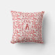 Leafy Red Pattern Modern Elegant Monogrammed Cushion