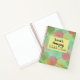 On this sketch book are colourful transparent leaves on a light blue backdrop with a yellow square where you can personalise the title of your book to make it uniquely your own.