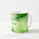 This lovely leafy wedding mug invites you to enter a world of peace and serenity. Maple leaves frame the image, leading to a woodland scene in yellow, white and forest green. Customise text for your special occasion.