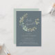 This elegant gender neutral baby shower sprinkle invitation features a simple, leafy green botanical wreath, with faux gold line art in the shape of a flower and leaves. Stylish calligraphy is also featured along with modern text on a slate coloured (dark blue tinged grey) background.