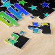 This fun and exciting birthday-themed jigsaw puzzle design features the message "HAPPY BIRTHDAY, LEAH" with the characters having a colourful rainbow spectrum inspired gradient pattern, along with a vibrant field of stars background pattern. An exciting puzzle like this might be a fun way to send birthday greetings to somebody named Leah. [~Z0000468]