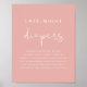 This late night diapers baby shower game template features an edgy handwritten font and a modern minimalist design with a vibrant pastel pink and white colour combination. Use these templates to edit font colour, and the background colour to match your event style. Pair with additional items from the LEAH Collection for a cohesive look.