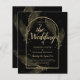LeahG Black Gold Leaves Modern Wedding INVITE