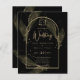 LeahG Black Gold Leaves Modern Wedding INVITE