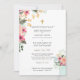 Pretty watercolor flowers, pink and peach colours ideal for a spring, summer, fall or winter wedding. Also included pretty sage and olive green greenery and leaves, mason jar, a gold cross, classic elegant design with parents names and customisable scripture. Design by LeahG,