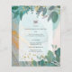 LeahG Seaglass Ink Teal Gold Greenery Wedding Inv