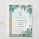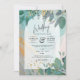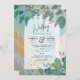 LeahG Seaglass Ink Teal Gold Greenery Wedding Inv Invitation