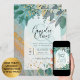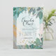 LeahG Seaglass Ink Teal Gold Greenery Wedding Inv Invitation